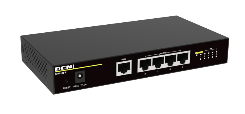 5口全千兆POE网关,整机带5个千兆以太网口,其中4口支持POE(802.3af/at),POE总输出功率60W.铁壳设计,支持桌面使用环境。网关模式默认含32台支持IAP管理许可,旁路部署默认支持128IAP管理,支持VPN、PPPoE、安全防护等丰富功能